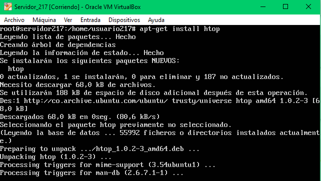 con el comando apt-get install es posible instalar un programa, en este ejemplo se instalará el programa htop.